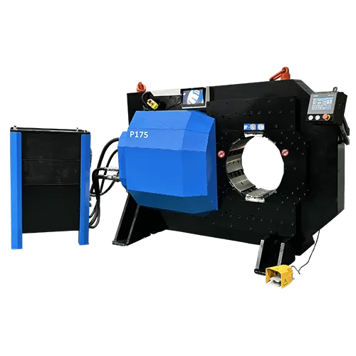 The TRC-P175 hydraulic hose press delivers 830TON / 8300kN — the highest force in the TRC industrial lineup. Handles hose up to 15″ diameter (600mm standard, 640mm non-standard) with extra-long master dies for single-stroke long tube and pipe forming. This hydraulic hose press is the flagship production machine for the largest industrial hose assemblies.