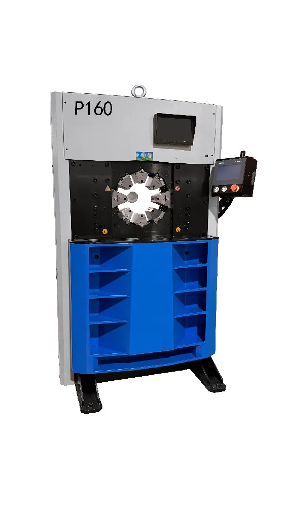 The TRC-P160 industrial hydraulic crimper delivers 200TON / 2000kN with a built-in CNC system for step crimping, quality reports, and data save. Handles 10–87mm hose up to 2″ 4SH in semi-auto or auto mode. This industrial hydraulic crimper is the workshop production choice for operators who need traceable crimp quality.